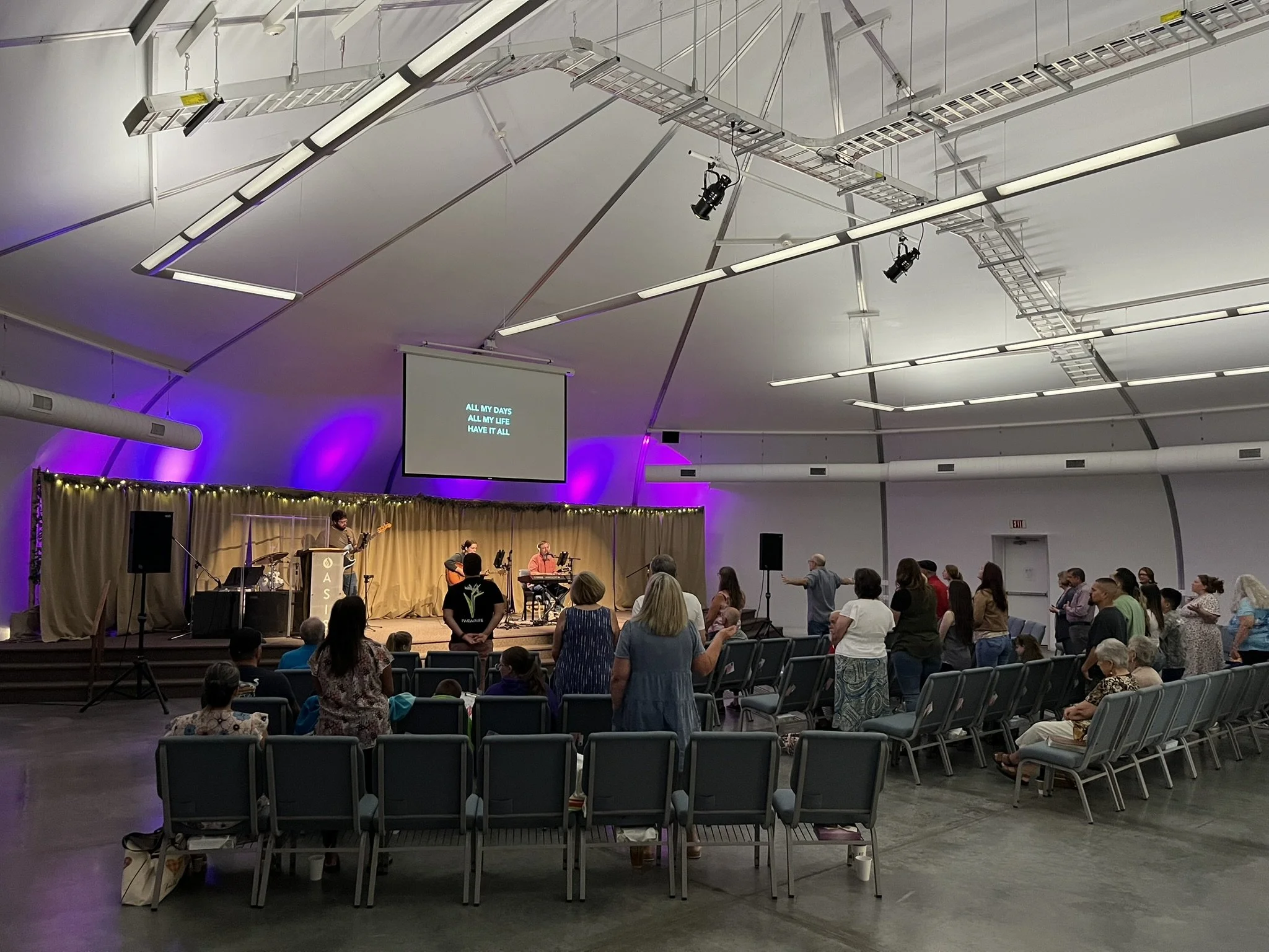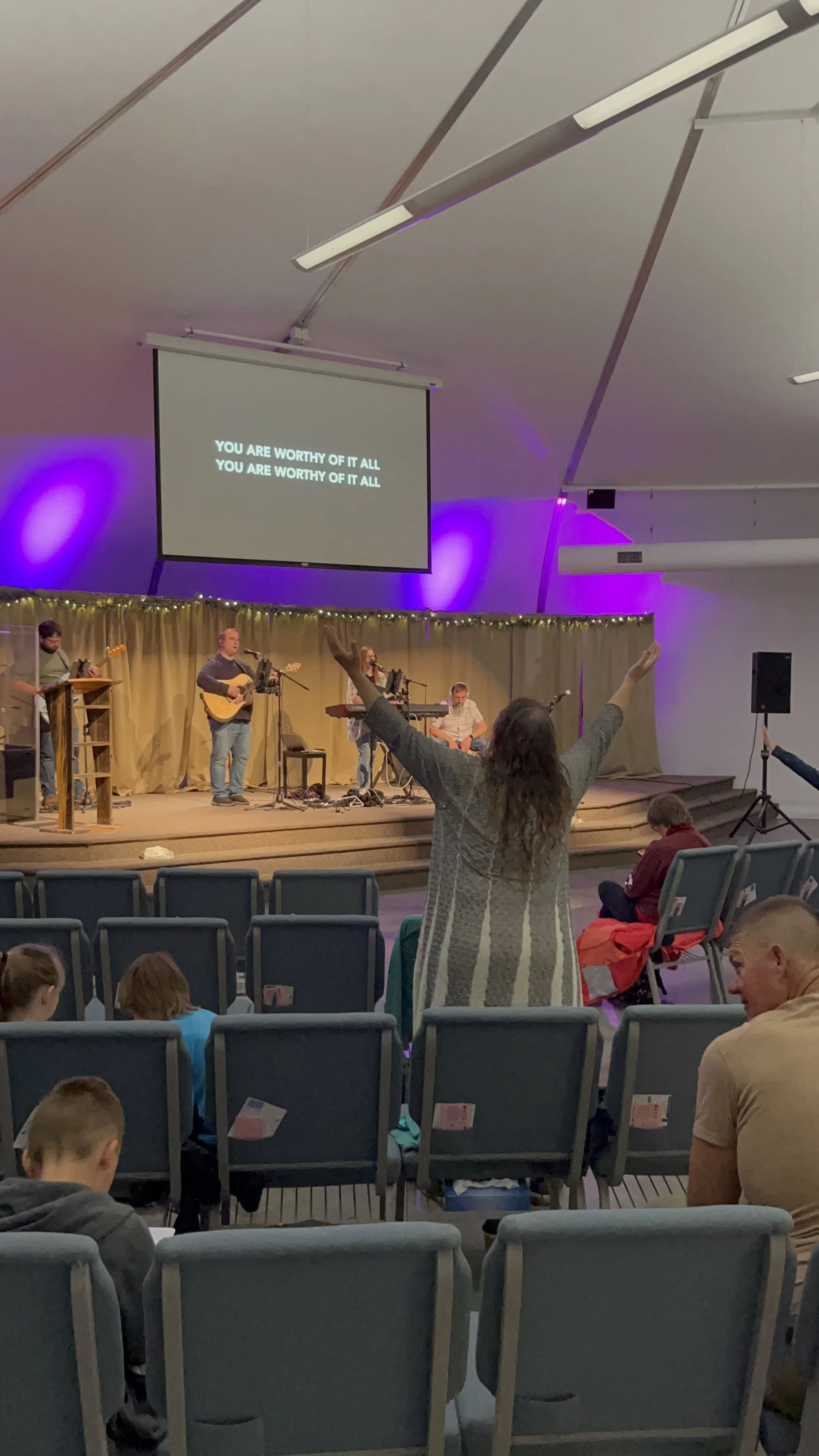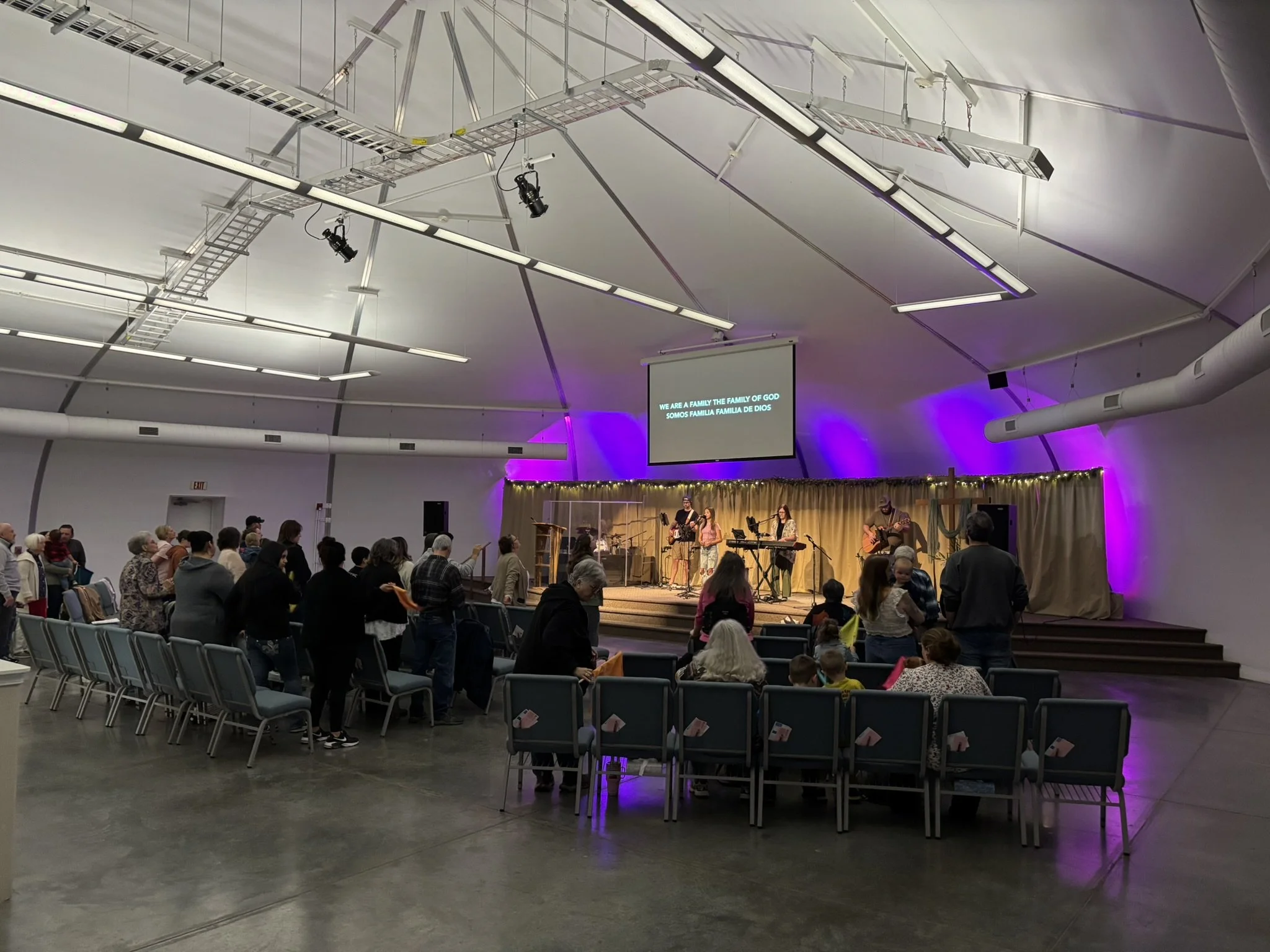We always have greeters at the main glass doors on the east side of the building. The greeters will welcome you, answer any questions, and show you the way to our worship area or where to check-in your children for children's ministry. When you enter the sanctuary, you may choose a seat, wherever you feel comfortable. We have a spacious sanctuary. Make yourself comfortable.